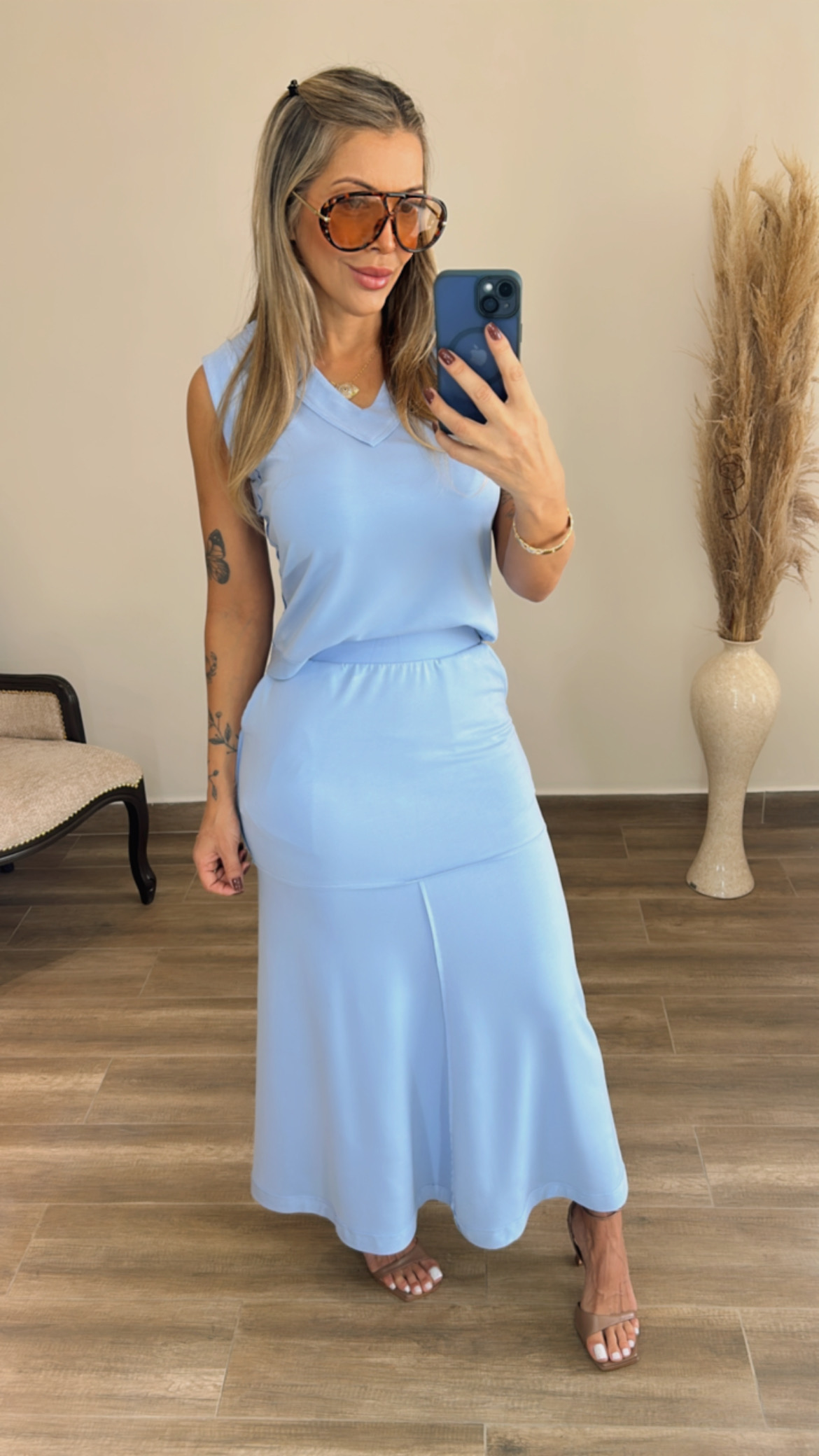 Conjunto regata e saia midi todo no moletinho premium com elastano.