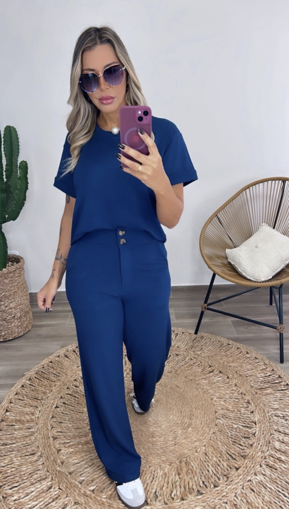 Conjunto de blusa e calça em moletinho com elastano.